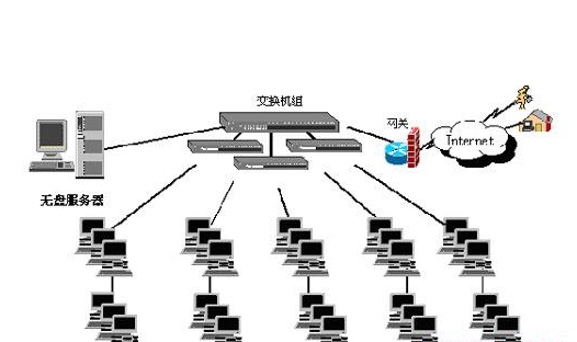 網(wǎng)吧內采用的無盤網(wǎng)絡系統(tǒng)。網(wǎng)吧機器分為服務器和客戶機兩個部分,在無盤系統(tǒng)下,客戶機是不用配置硬盤的,所有客戶機通過網(wǎng)絡連接服務器內的超大容量硬盤,并利用硬盤內的系統(tǒng)鏡像啟動,而服務器硬盤內的文件在所有的客戶機上都能讀取。